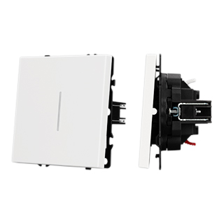 Строгие геометрические линии гармонично сочетаются с функциональностью продуманных механизмов, создавая идеальное решение для дизайн-проектов, где важны как эстетика, так и практичность. Механизм выключателя света совместим с рамками серии NOBE, создает утонченный минималистичный вид. Скрытый тип монтажа позволяет гармонично встроить в интерьер любого современного дизайн-проекта. Видимая часть механизма выполнена из высококачественного пластика белого цвета и имеет Soft-Touch покрытие, что придает изделию приятные тактильные ощущения и стильный внешний вид. Соединение посредством быстрозажимных контактов, позволяет надежно подсоединить механизм выключателя к питающим элементам, минимизируя затраченное время на монтаж. А усиленные распорные лапки двойного захвата надежно фиксируют механизм в установочном подрозетнике круглого сечения диаметром 60мм. Суппорт окрашен в черный матовый цвет под основу механизма и выполнен из металла толщиной 1,5мм, что обеспечивает безопасность и уверенность в установке. На каждой стороне суппорта размещены фиксирующие элементы, позволяющие комбинировать механизмы в системы до 5 шт как горизонтально, так и вертикально. Выключатель оснащен клавишами с активной подсветкой, синего цвета свечения.