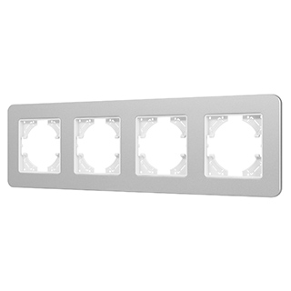 Рамка алюминиевая на 4 поста, под встраиваемый механизм. Цвет - серебристый с Soft-Touch покрытием. Среднего уровня герметичности IP20. Ориентация монтажа - горизонтальная (основным ориентиром служат посадочные выступы для накладки механизма).
