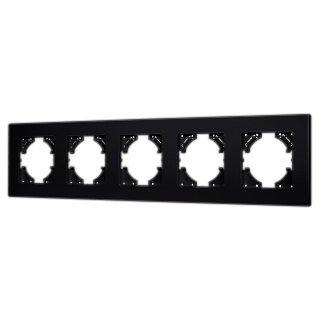 Рамка пластиковая на 5 постов, под встраиваемый механизм. Цвет - черный. Среднего уровня герметичности IP20. Ориентация монтажа - горизонтальная (основным ориентиром служат посадочные выступы для накладки механизма).