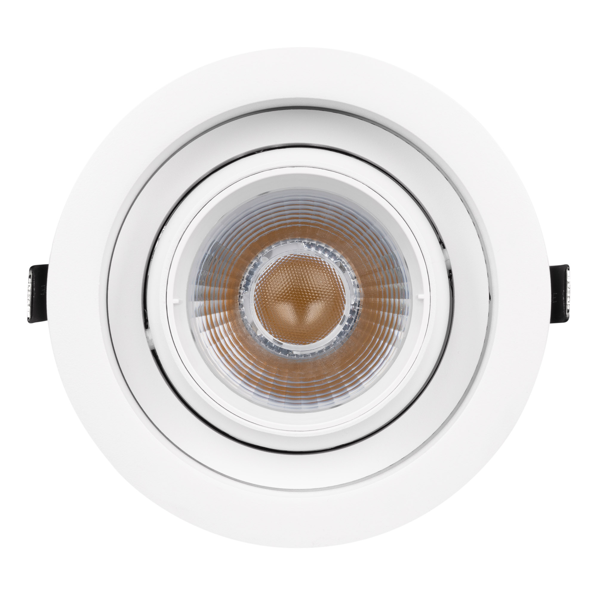 Встраиваемый карданный поворотный светильник с высоким индексом цветопередачи CRI>92 предназначен для создания качественного освещения. За основу поворотного механизма светильника взят принцип кардана – подвижное соединение двух колец, вложенных одно в другое. Световой модуль вращается вокруг своей оси на 360 градусов и отклоняется от горизонта на 30 градусов, что позволяет с лёгкостью регулировать направление пучка света и его концентрацию на определенной зоне. Особая конфигурация корпуса из алюминия оригинально смотрится в интерьере и позволяет эффективно отводить тепло. Светильник с углом рассеивания 30 градусов отлично подходит как для локальной акцентной подсветки витрин, прилавков магазинов, бутиков и стендов выставочных залов, так и для общего освещения. Легко устанавливается с помощью пружин в монтажное отверстие потолка. В комплекте поставляется драйвер, что позволяет безопасно и быстро подключать светильник напрямую к сети переменного тока 230 В.